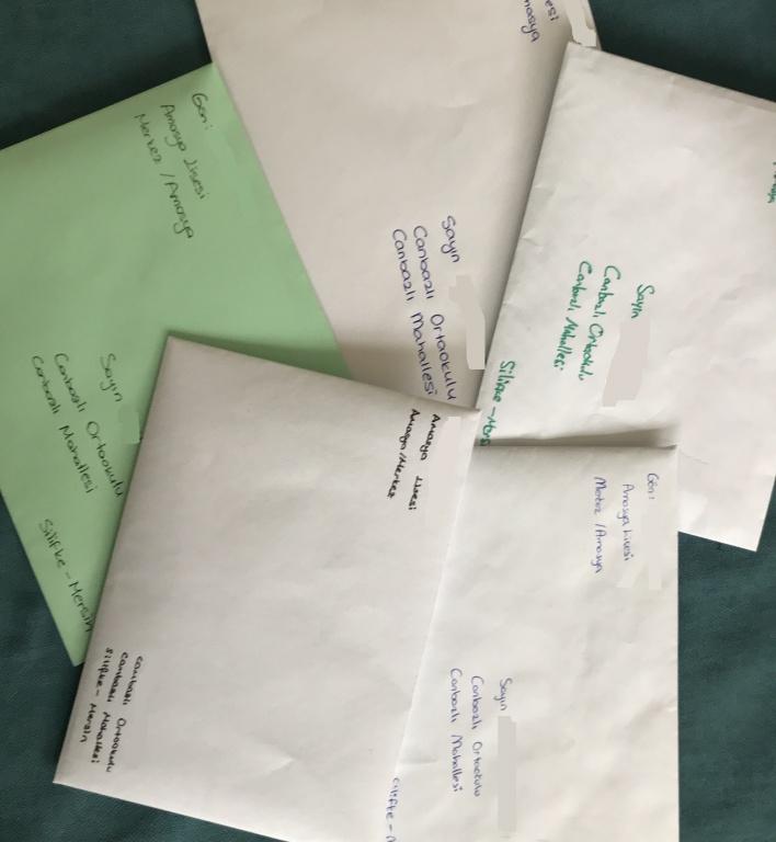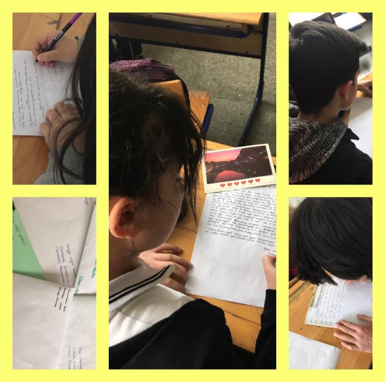 Öğrencilerimiz İngilizce öğretmenimiz FATMA ERARSLAN DUMLU önderliğinde yürütülen eTwinning projesi kapsamında Mersin'de bulunan bir ortak okulun öğrencilerine İngilizce mektup yazarak postaya verdiler. Onlardan aldıkları mektuplarla da mutlu oldular. Böylelikle İngilizcelerini geliştirme fırsatı yakaladılar ve ayrıca bu okul öğrencileri ile de görüntülü konuşma yaparak İngilizce konuşma pratiği de yapma şansı buldular.